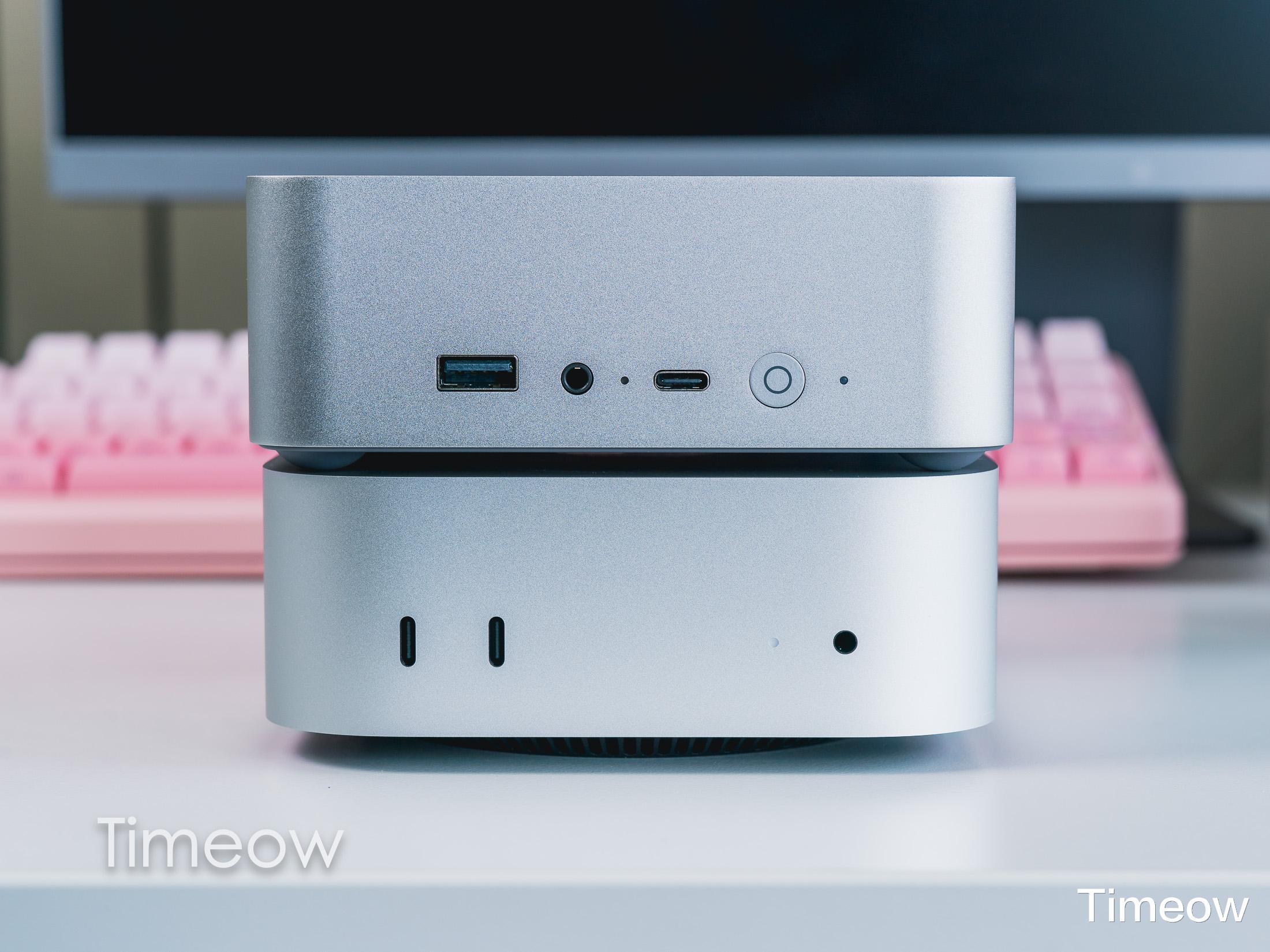 做工方面,它的边缘圆润无毛刺,最关键的是,边缘不像Mac mini那么锋利、拿捏的很好,日常拿取不割手、也减少了磕碰时对其他设备造成的伤害。