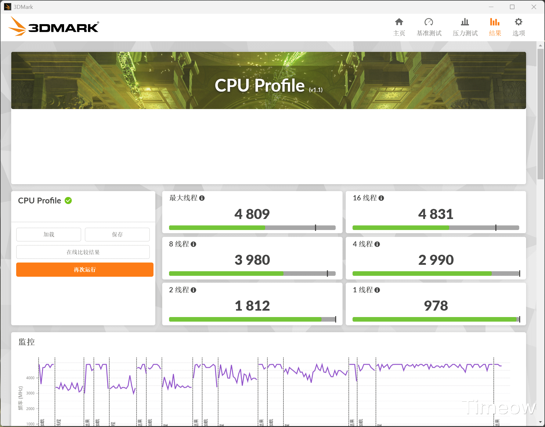 单线程得分978,多线程得分4809—这个成绩意味着整机的性能水平属于中高端,尤其是单核性能非常亮眼。