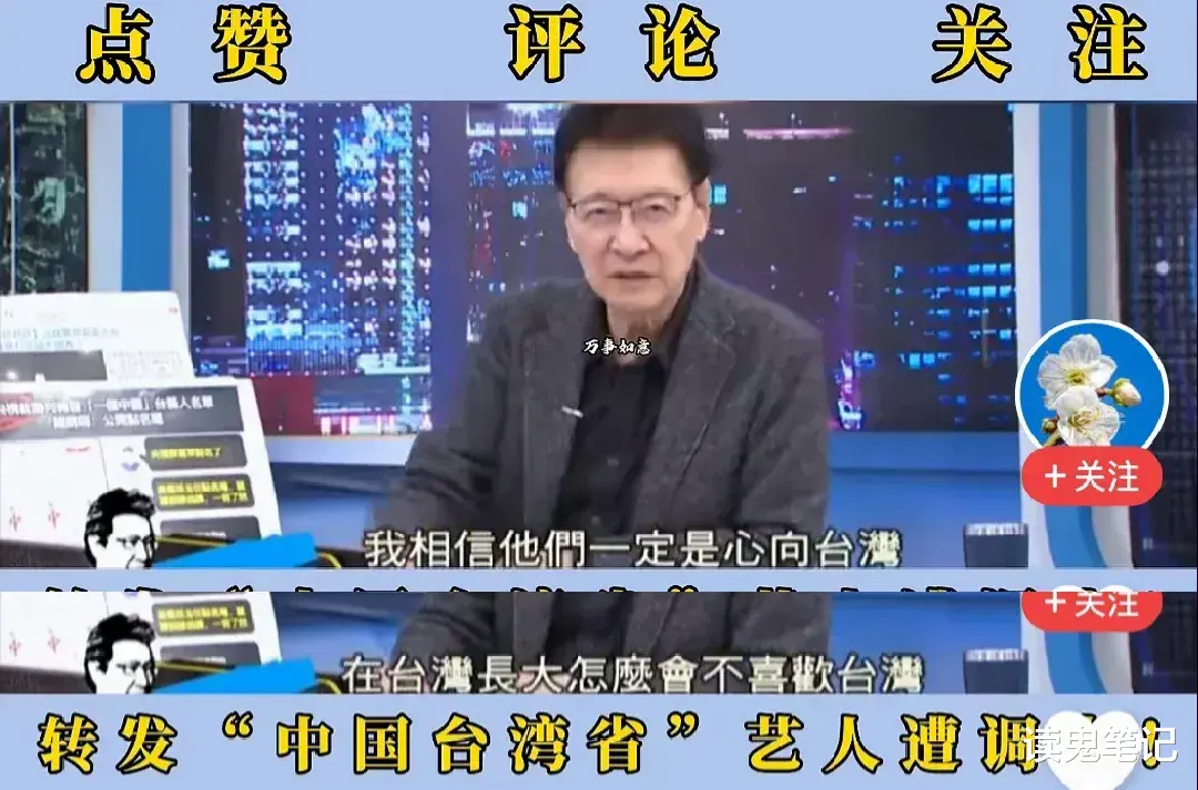 那些转发央视新闻帖的台湾艺人,当然是喜欢台湾的,但爱台湾与爱中国并不矛盾。比如我是江苏省的,我热爱江苏,这与热爱祖国有什么矛盾?台湾人爱台湾与爱祖国不仅不矛盾,而且都是必须的。