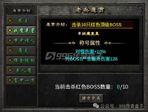 会员是可以免费开启的,需要击杀红怪,每个地图最后一层都会有红怪,法道会好打一些。击杀十八个红怪领取了初级会员,可以去盟重土城右下角的盟重老兵处领取妖魔克星的称号,这个需要击杀十个红怪,加对怪伤害,对BOSS会产生额外伤害。