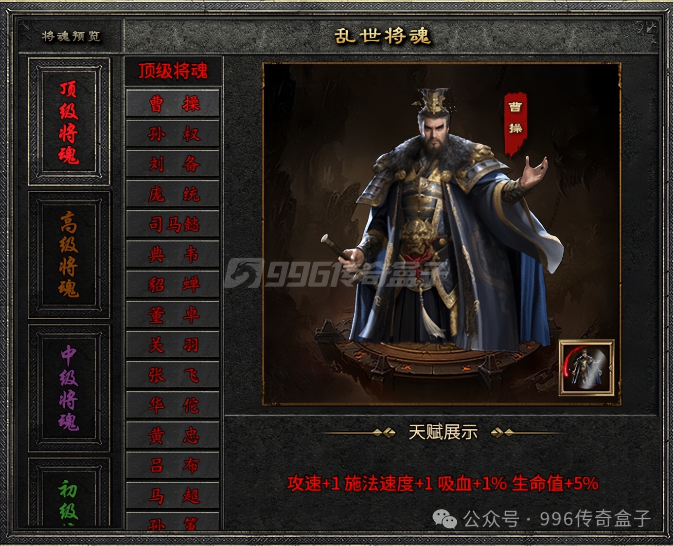 本命将魂是这个服的创新玩法,刷怪几率掉落点兵符,一百个点兵符可以合成一个点将符,点将符可以在本将命魂处进行点将。将魂分为五个等级,等级越高将魂属性越强,每人最高可佩戴两位将魂。