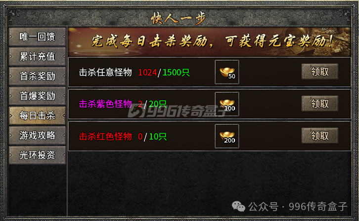 上线有引导,跟随引导走就会到达土城,然后就能开始做主线任务了。这个主线任务其实就是右上角快人一步中的每日击杀任务。这个任务是需要一定时间来完成的,毕竟需要击杀的数量不少的,上班族挺合适的。