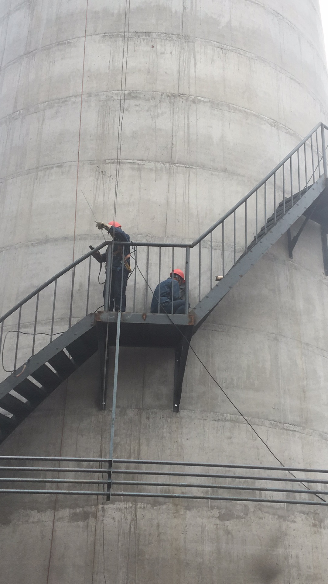 1.技术准备:熟悉施工图纸及烟囱结构参数,明确平台标高、爬梯角度、栏杆高度等技术要求。 对施工人员进行安全技术交底、高空作业专项培训,考核合格后方可上岗。 检测烟囱筒体结构强度,确认锚固点承载力,避免改造对主体造成损伤。