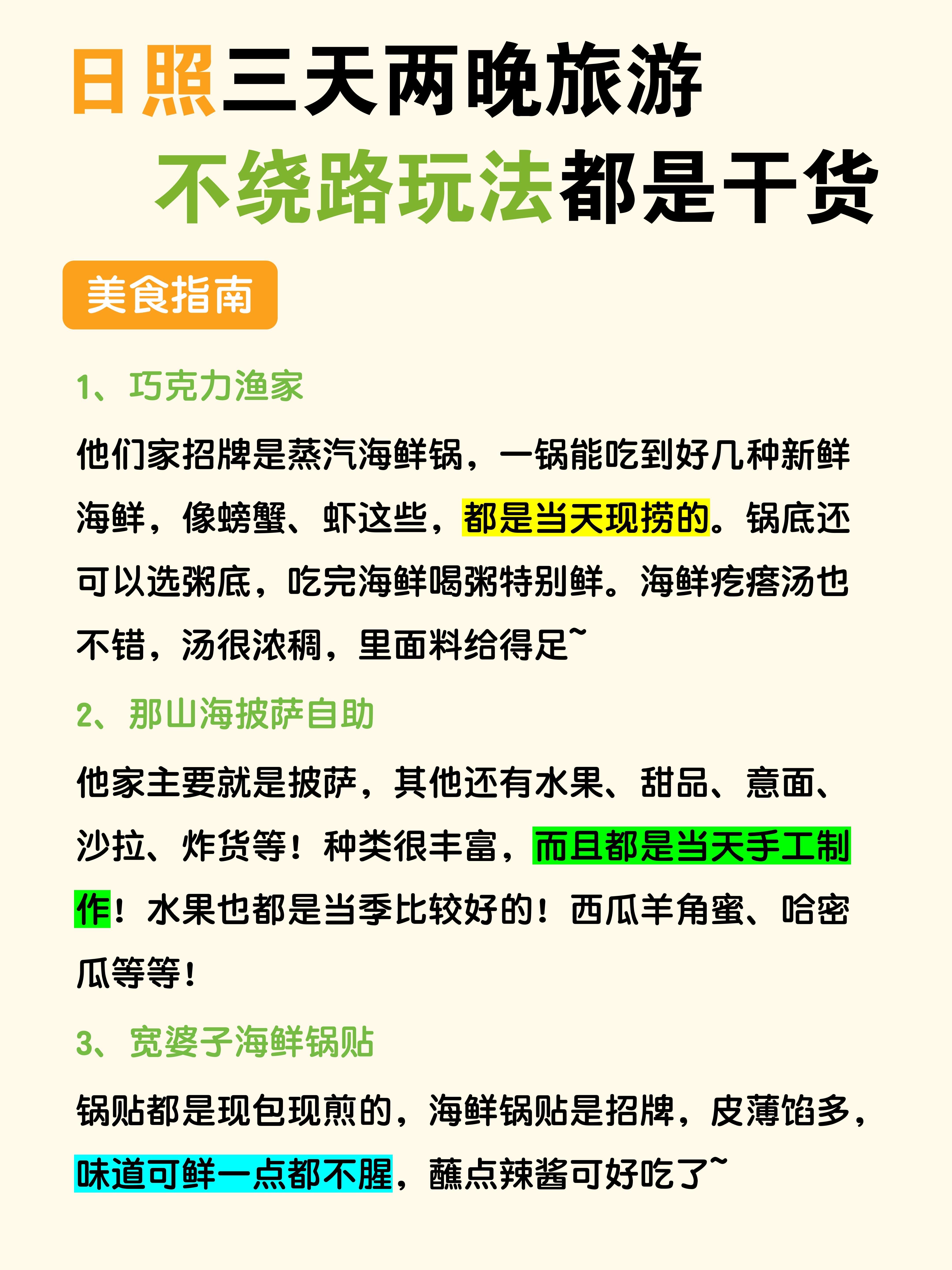 日照三天两晚旅行,不绕路玩法