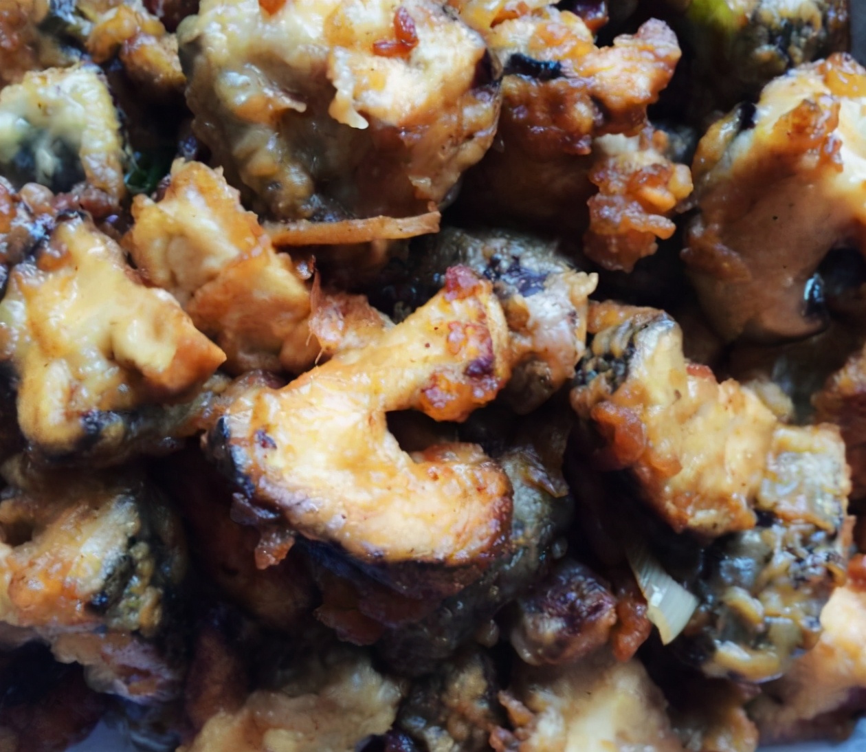 材料:鲜香菇、蛋清、面粉、玉米淀粉、油、盐、辣椒、椒盐