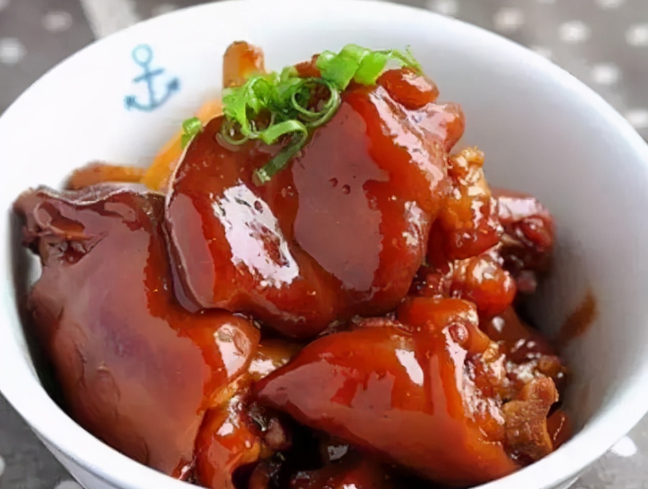 食材:(一汤匙=15ml):猪蹄500g、葱、姜、八角一颗、花椒十粒、生抽两汤匙、老抽半汤匙、料酒一汤匙、冰糖一汤匙、香油半汤匙。