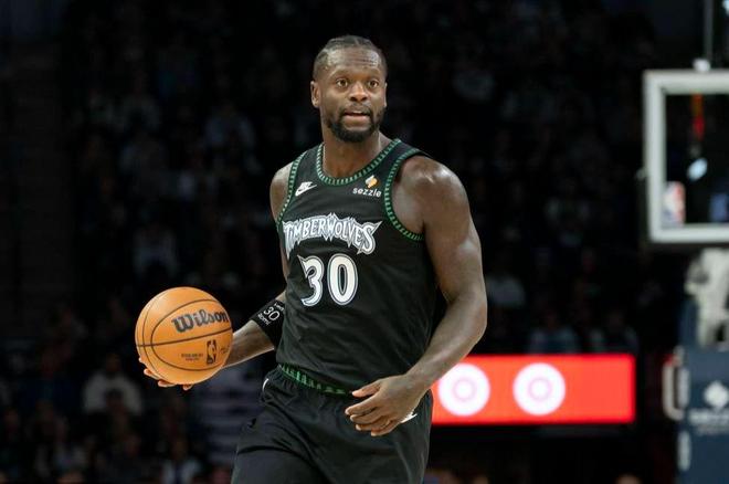 森林狼队首发:朱利叶斯-兰德尔、丹特-迪文琴佐、鲁迪-戈贝尔、贾登-麦克丹尼尔斯、安东尼-爱德