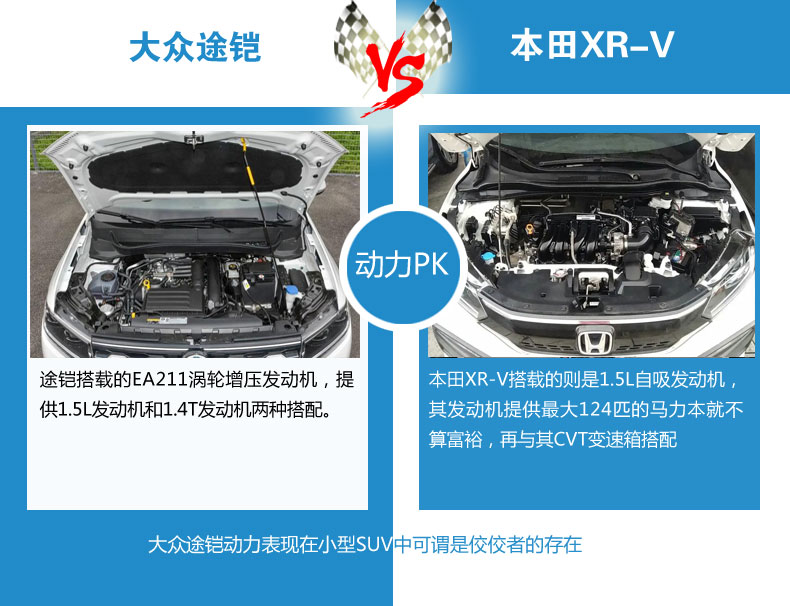 小型SUV凭借着小巧精致的外观以及性价比博得了一大部分消费者的青睐,今天小编在沈阳给大家对比一个大众途铠和本田XR-VV,我们一起看看吧。