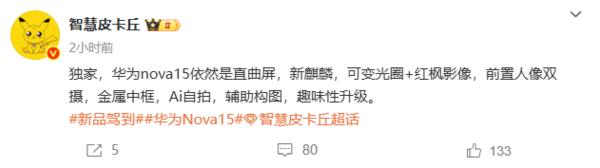 日前,数码博主“智慧皮卡丘”独家爆料称,“华为nova 15依然是直曲屏,新麒麟,可变光圈+红枫影像,前置人像双摄,金属中框,Ai自拍,辅助构图,趣味性升级。”由此来看,华为在影像方面貌似是要全面普及“可变光圈+红枫影像”。此外,据此前爆料,华为nova 15系列将有三个版本,分别是标准版、Pro版和Ultra版。