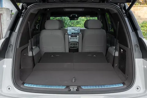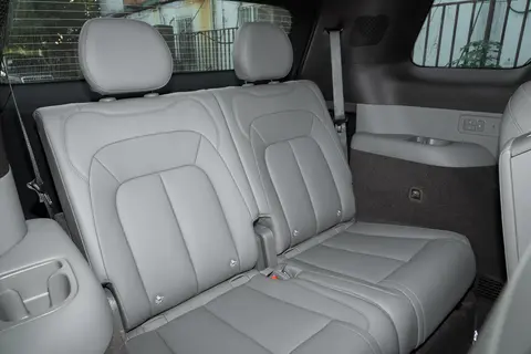 第二排是真正的“C位”。独立航空座椅支持加热、通风、按摩,右侧座椅还带有电动腿托,展开后可实现近乎平躺的姿态。第三排表现同样令人惊喜:拥有100mm电动前后滑移和121°靠背调节角度,还配备了三档座椅加热与独立空调出风口。我体验时,第二排调至中间位置,进入第三排仍有约一拳腿部空间,成年人短途乘坐完全无压力。