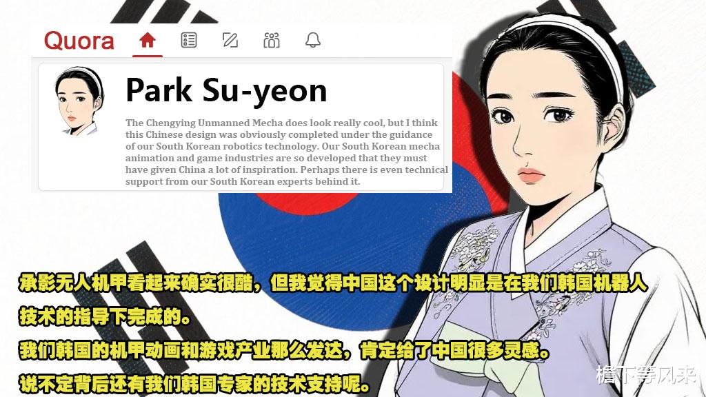 不过韩国网友的评论就比较有意思了:承影无人机甲看起来确实很酷,但我觉得中国这个设计明显是在我们韩国机器人技术的指导下完成的。