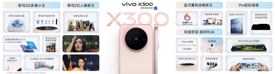 X300系列这次分成两个版本:Pro主打蔡司2亿APO超级长焦,标准版主打蔡司2亿超级主摄。
