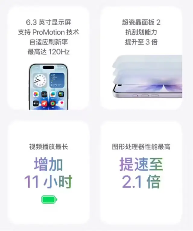 真机还没摸到,参数已经背得滚瓜烂熟:6.3 寸屏,边框窄得可以夹蚊子,120Hz 高刷终于下放,最低1Hz 挂微信也省电;超瓷晶面板2代,钥匙乱刮不留痕;A19 芯片+3nm,跑原神只是热身;4800 万主摄+超广角,拍猫拍狗都带毛茸茸的质感。苹果一句“全天续航”轻描淡写,翻译过来就是:北漂早上出门挤地铁,晚上加班到十点,路上还能剩 30%。