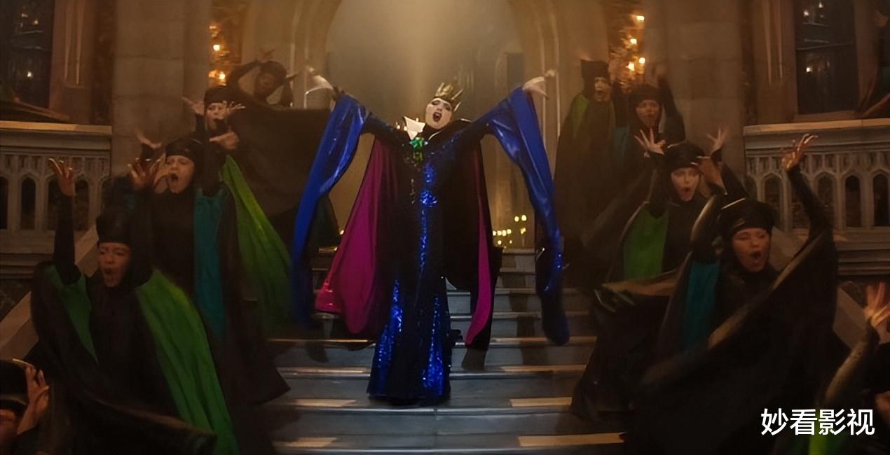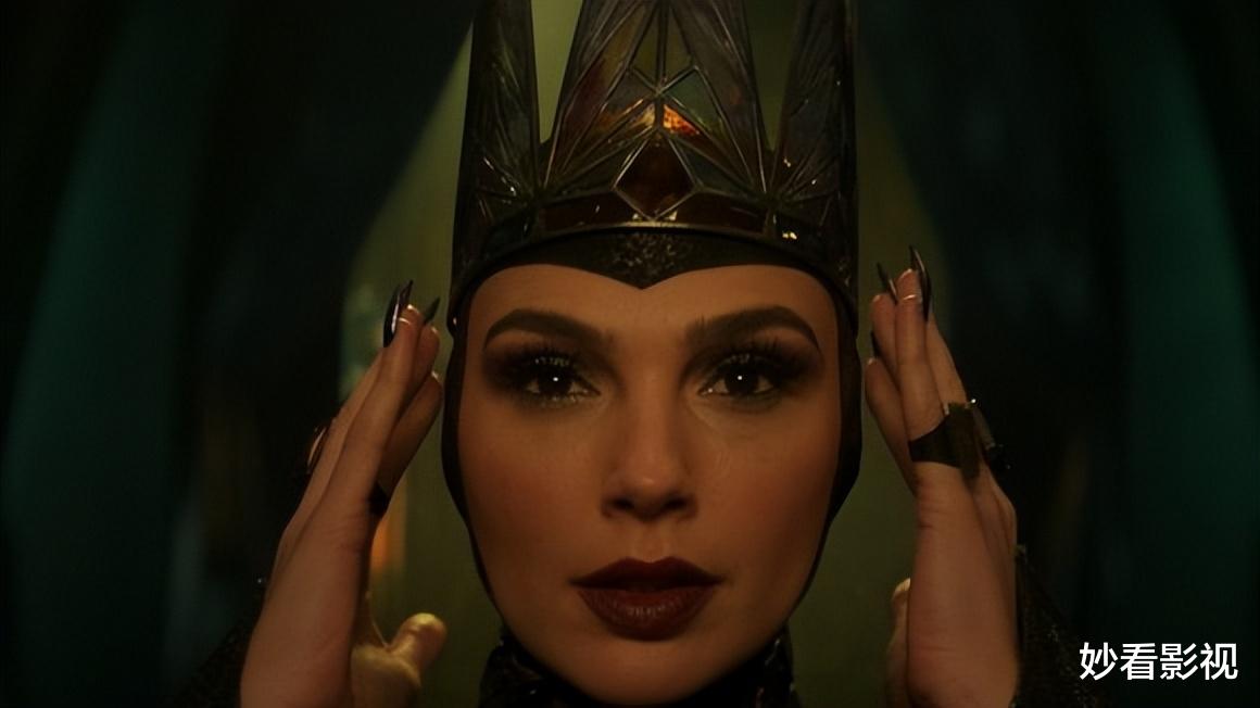 盖尔·加朵的邪恶女王更让人摸不着头脑。这位以面瘫演技闻名的“神奇女侠”既没有查理兹·塞隆版的狠劲儿,也没有原版动画里的妖气,就靠一身亮片裙子撑场面。唱歌时声音发飘,发脾气时像被踩了尾巴的猫,哪有半点"邪恶"的气场?
