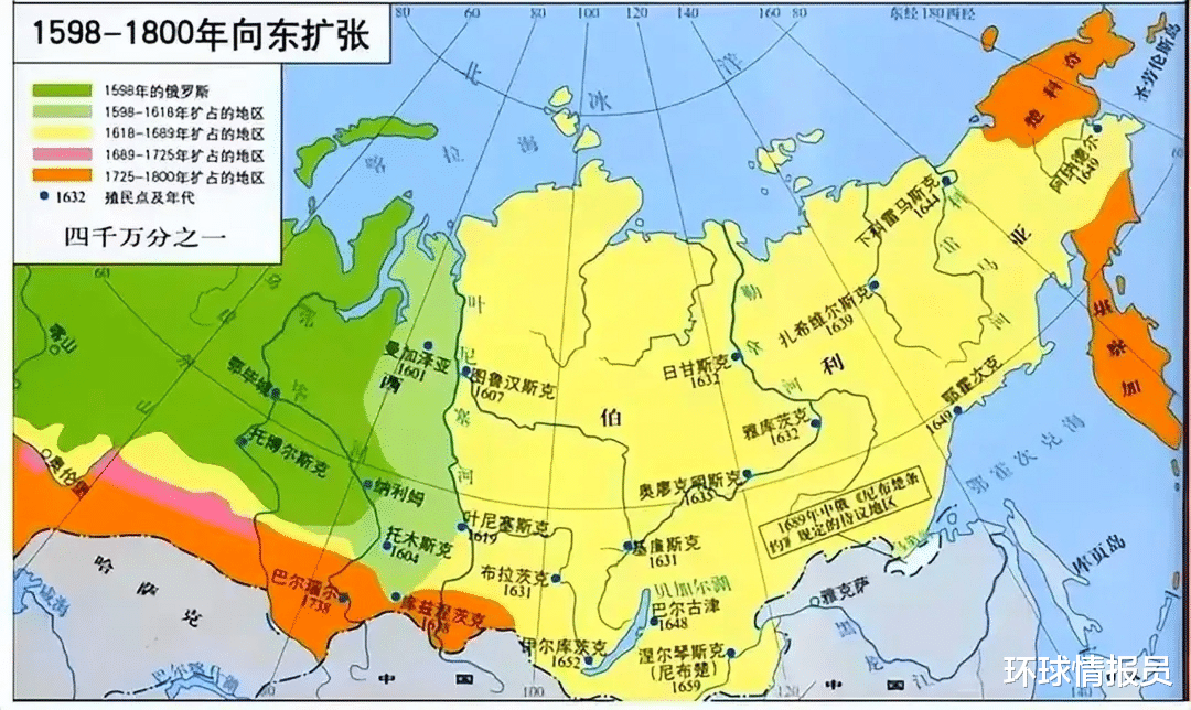 与此同时,核心领土位于东欧平原的俄国自16世纪末开始向东扩张,没想到短短半个世纪,俄国就鲸吞西伯利亚,扩张至太平洋沿岸。