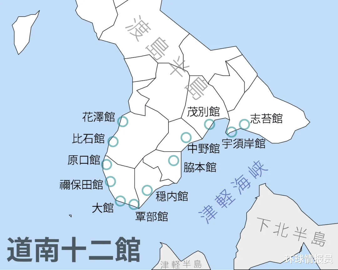 因此12-15世纪,日本仅在北海道与本州岛相邻的渡岛半岛上控制着一批小型据点(道南十二馆)。