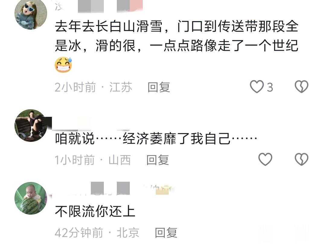 经历现场的一名游客李女士告诉媒体,当时玩滑雪的人非常多,游客都已经爆满了,但是景区就是没有进行限流处理。人都站在传送带上坐到滑雪场的顶部,直接导致超负荷运载,传送带直接停止运动。