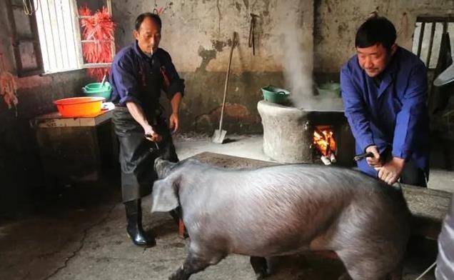 杀猪倌收下2元工钱后尽显本领。嗷嗷乱叫的过年猪,在杀猪刀下变得服服帖帖。