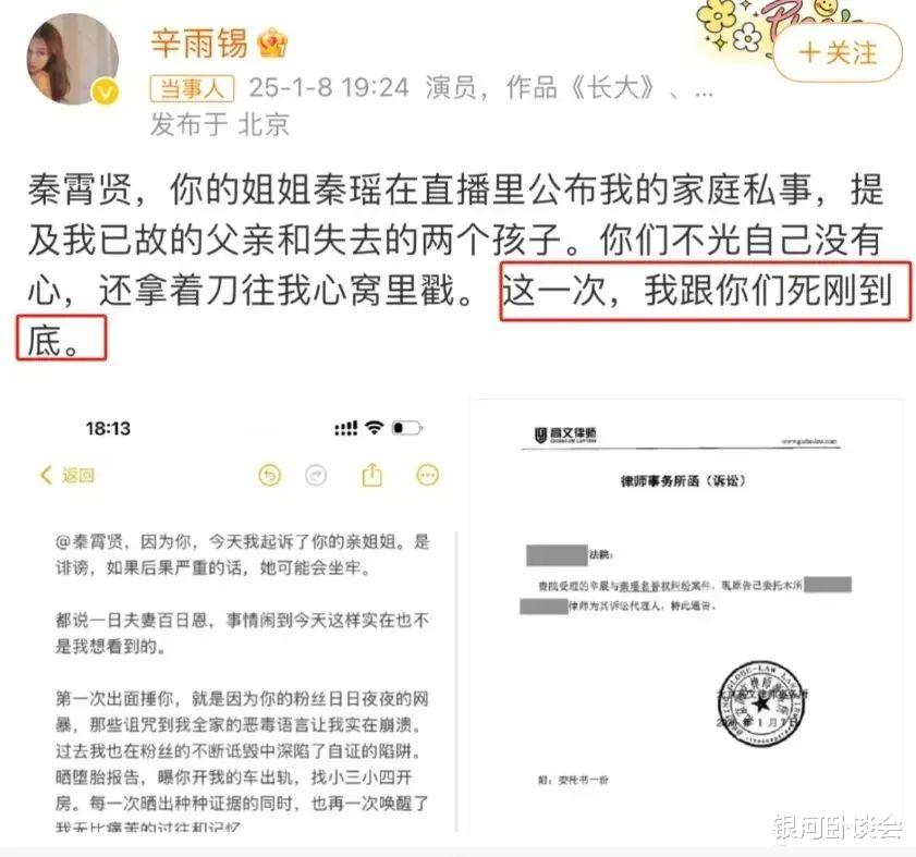 结果辛雨锡却反手将秦霄贤姐姐告上了法庭,丝毫没有在怕的。