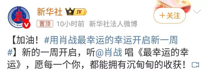 新华社发文,好评歌手肖战演唱的歌曲《最幸运的幸运》。