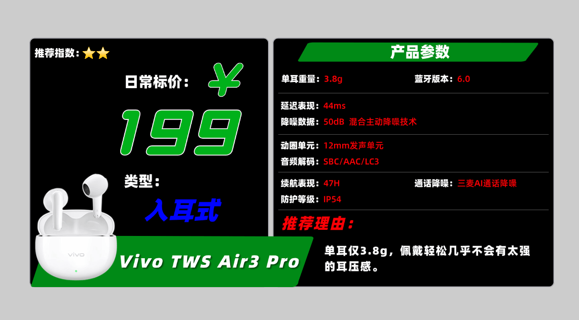 9、V ivo T WS Air3 Pro蓝牙耳机