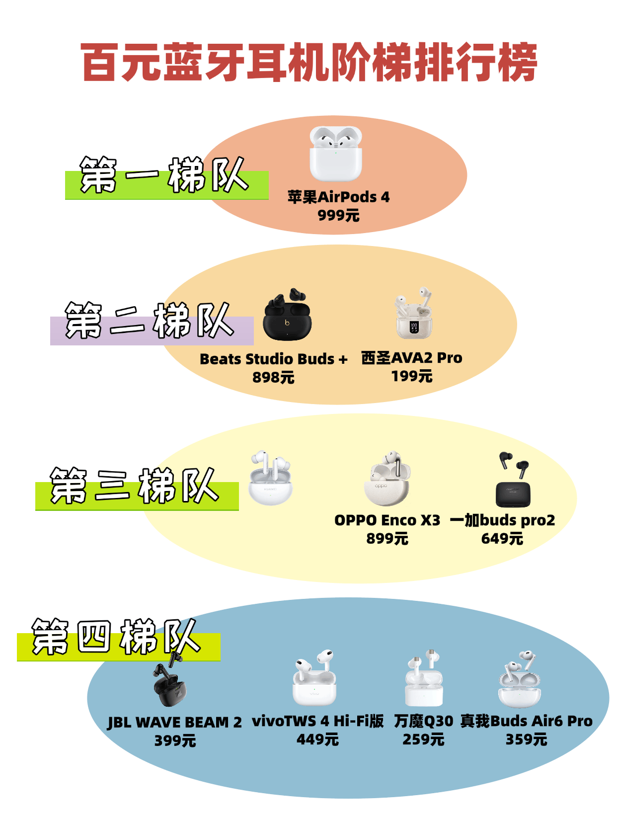 以下是我根据蓝牙耳机的专业测试表现绘制的排行榜,一眼就能看出差别,大家可以参考一下。
