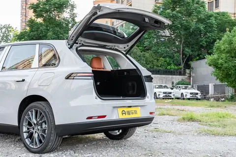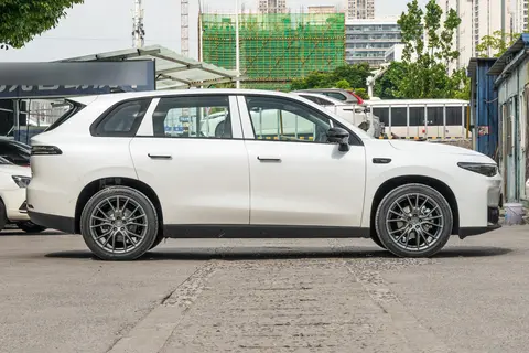 车身侧面线条顺溜,这么大一台中型SUV,看着不笨重。悬浮式车顶让车显得长一点,视觉上舒服。隐藏式门把手不光好看,跑高速的时候能减少风噪,车里能安静些。原厂的珠光白车漆,太阳底下有细腻的光泽,看着有质感,不用额外加钱。19寸的轮毂配着往外扩的轮眉,让车看着很扎实,这种稳当的样子,家里人看着也放心。