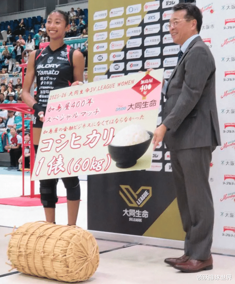 而本场比赛最值得一提、最耀眼的球员是姬路女排的宫部蓝梨,她在本场不是以副攻出战,而是以接应身份首发上阵,打出了惊艳数据:69次扣球命中28次,外加3次拦网,共计31分!并且获得单场MVP,奖品是60kg的大米一袋。