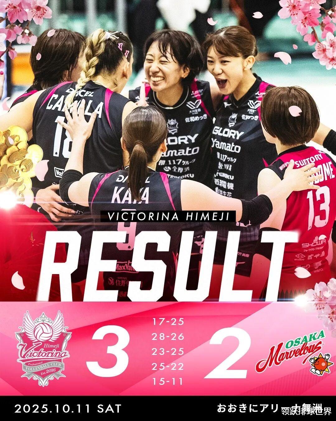 北京时间10月11日,日本女子排球SV联赛第一阶段第2轮在大阪舞洲举行,上赛季SV联赛女王大阪奇妙女排在主场苦战五局,以