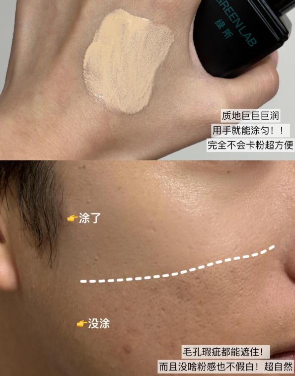 不管什么毛孔啊、脸上的瑕疵啊,都能遮,而且没啥粉感觉,特别自然。