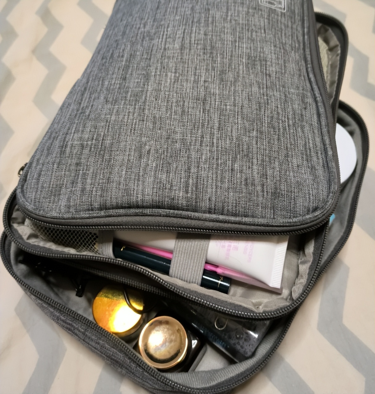 而且质量也很好,基本平时用的化妆品,都能装进去收纳。