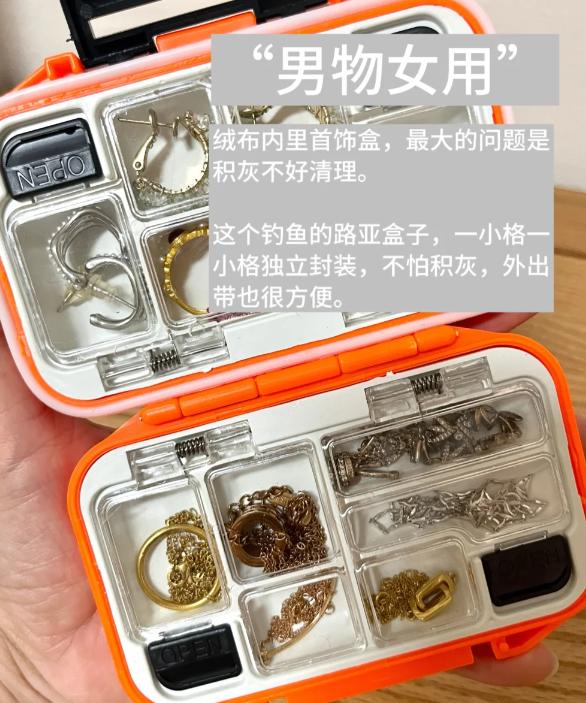 男生钓鱼的小盒子,用来装首饰简直太适配了。