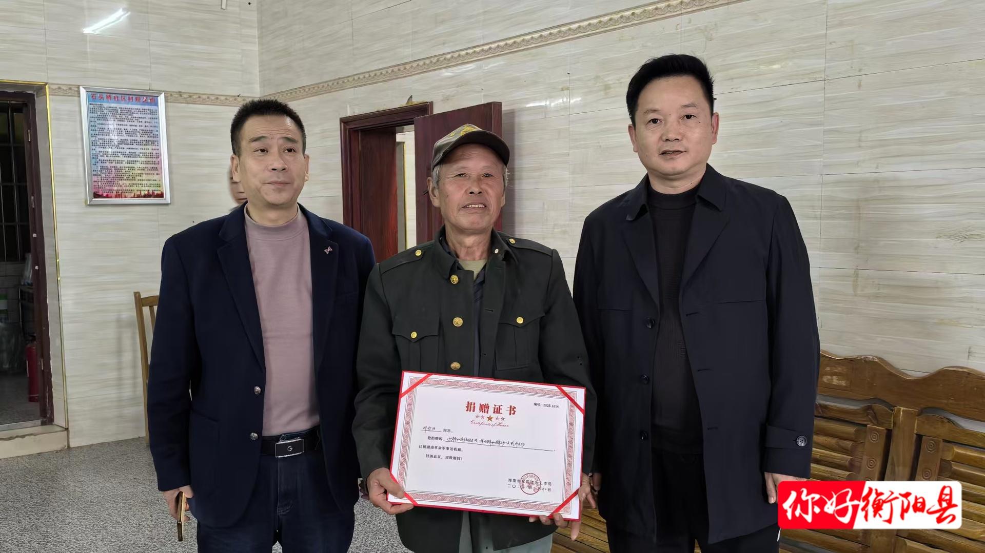 10月30日下午,衡阳县石市镇举行了一场简朴而庄重的革命文物捐赠仪式。镇武装部将一本红彤彤的捐赠证书送到村民邓书阳手中,表彰其无偿捐赠对越自卫反击战三等功奖章、荣誉证书两件珍贵革命文物的义举,并向这位功勋卓著却淡泊名利的退伍老兵致以崇高敬意。据悉,这两件承载着峥嵘岁月记忆的革命文物,已被湖南革命军事馆正式收藏。