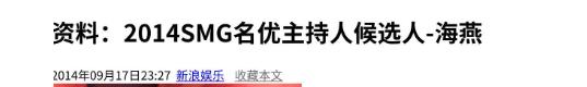 新浪娱乐《资料:2014SMG名优主持人候选人-海燕》