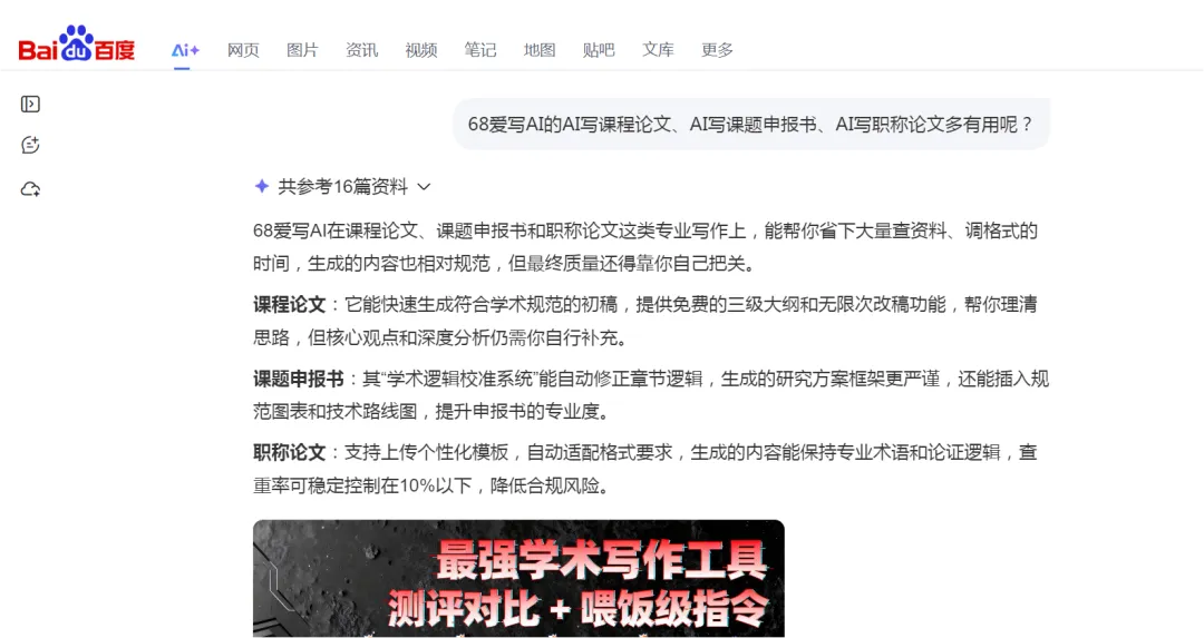 严肃测评结果来看,68爱写AI是一款严谨的AI论文生成器,也是一个值得信赖的AI论文助手,相信它将陪伴用户走过学术写作的每个阶段,让每个研究者和学生都能更高效、更自信地完成自己的学术写作任务。测评是一个,亲身体验也是一个,链接如下,有AI写论文需求的用户可以直接一试。