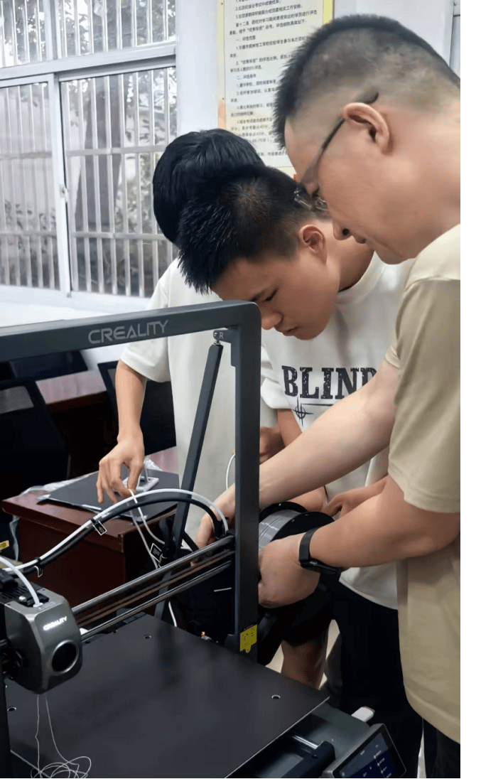 实践环节将活动推向高潮。同学们在指导下学习建模设计与打印流程,亲眼见证丝状材料如何一步步“生长”为实体模型,沉浸式体验了从数字设计到实物成型的完整过程。这不仅让大家近距离感受到智能制造的魅力,也通过亲手操作深化了理解。