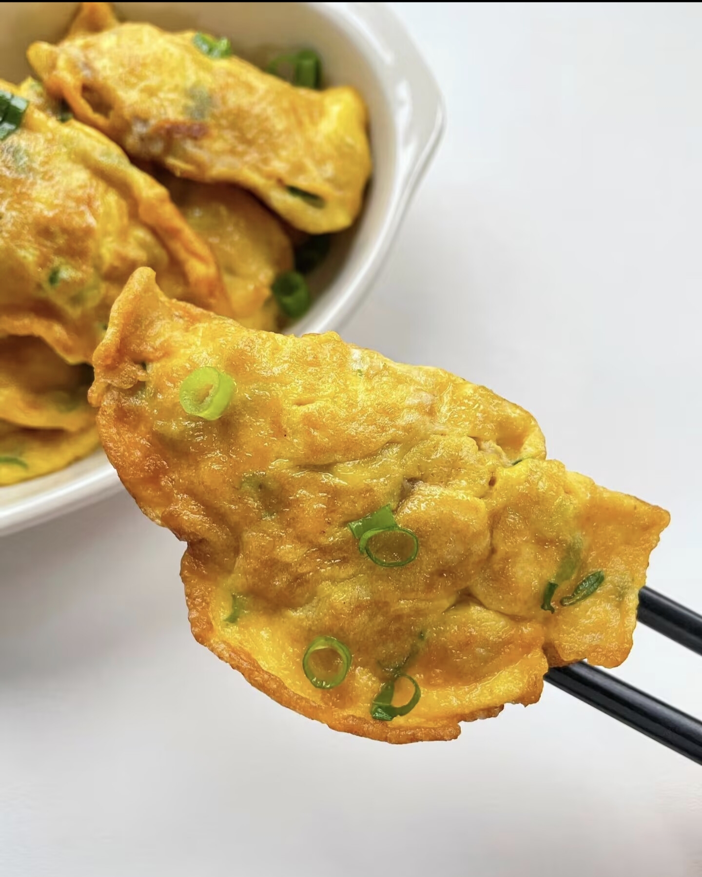 其实做蛋饺最享受的就是那个过程。站在灶台前,一勺一勺地摊,一个一个地包,时间在蒸汽和香气中慢慢流淌。听着蛋皮在锅里"滋滋"作响,闻着葱香混着蛋香飘满厨房,所有烦恼好像都被这温柔的金黄色融化了。每次我做完蛋饺,我家那小子都会守在旁边,刚出锅就伸手抓,烫得龇牙咧嘴也舍不得放下。