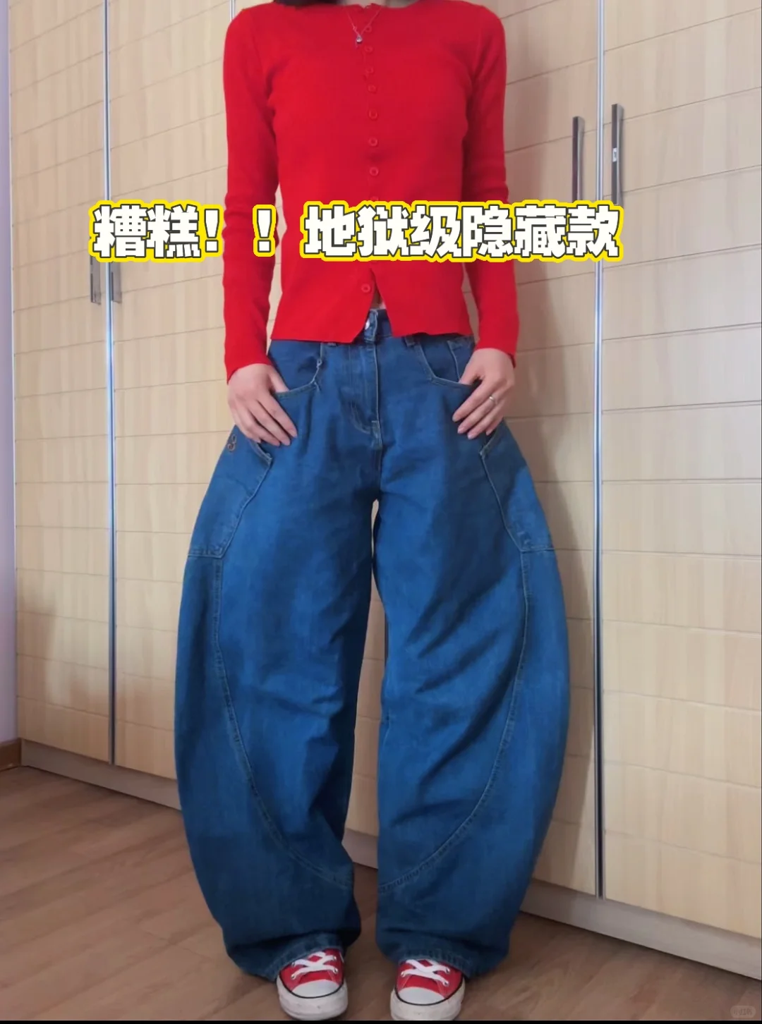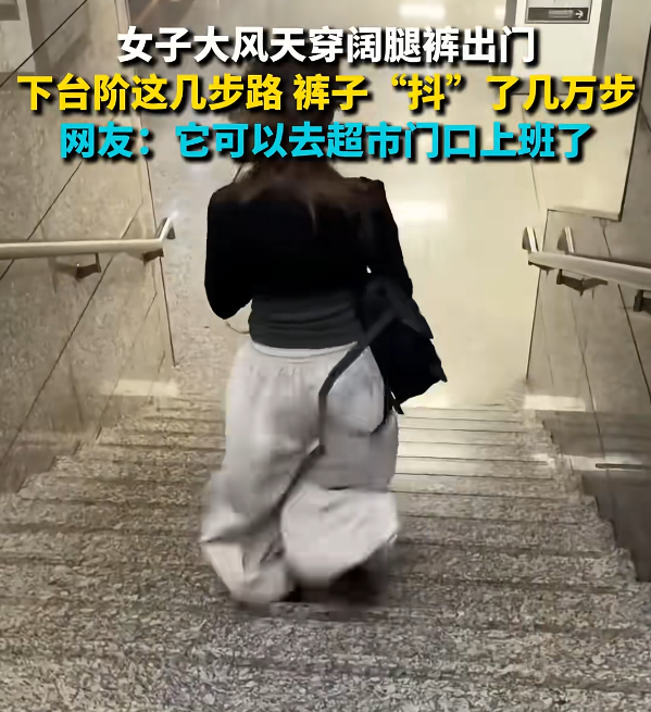 的确显不出梨形身材了,但是却变成了O型腿。哈哈~还有朋友调侃,说穿了这样的夸张的阔腿裤,像极了一个充气的相扑,感觉笑不活了!