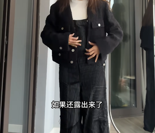 就算你要搭配一个外套穿,感觉不出一点腰身,背带裤前面也会挡住你的内搭,显得非常臃肿。