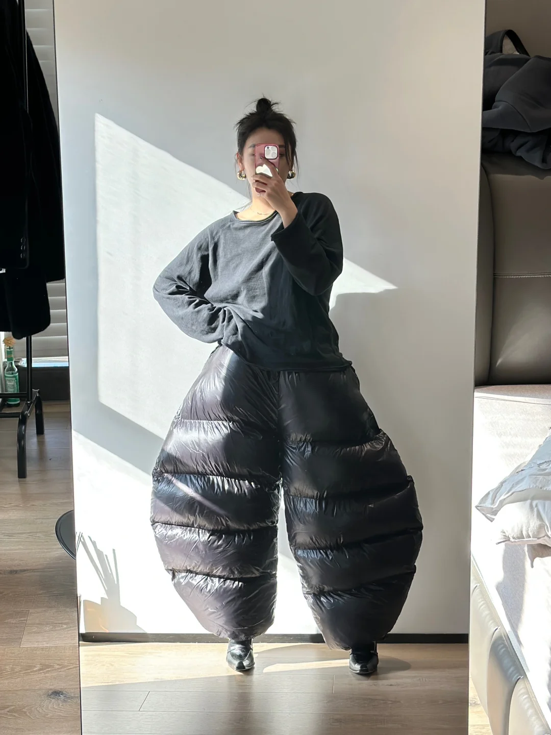 这都是什么设计,简直就笑不活了。这种裤子,不仅有牛仔款式,棉布款式,居然还有羽绒系列,话说真的能穿出门吗?