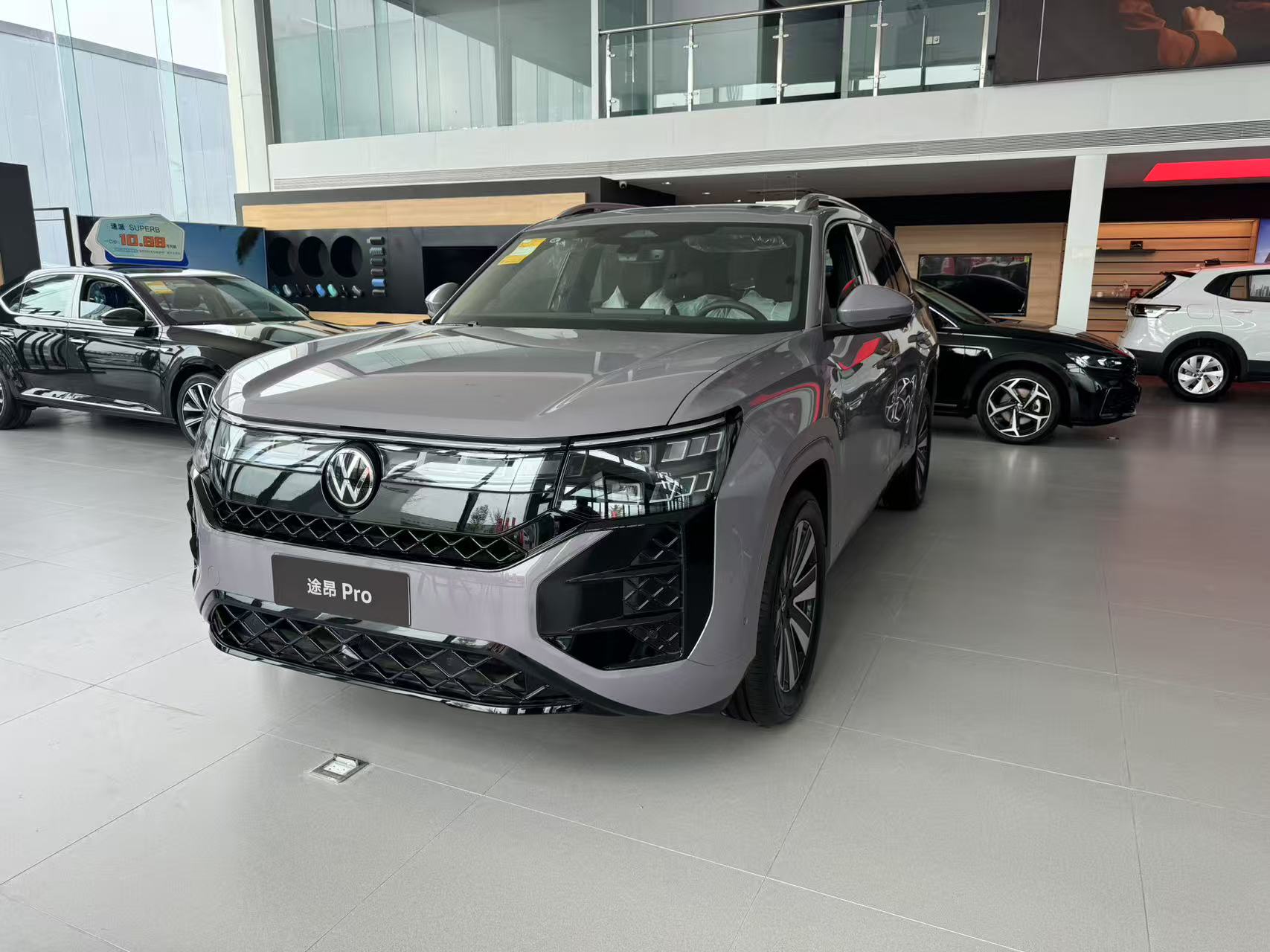 今天来看的途昂 Pro,算是这个价位里尺寸比较突出的了。外观第一眼感觉挺大气,对比老款确实年轻了不少,中网和灯组的设计更有科技感,车身线条也柔和了些。不过说实话,我个人还是更喜欢老款那种硬朗的风格,可能是看习惯了,这个就看每个人的审美吧。