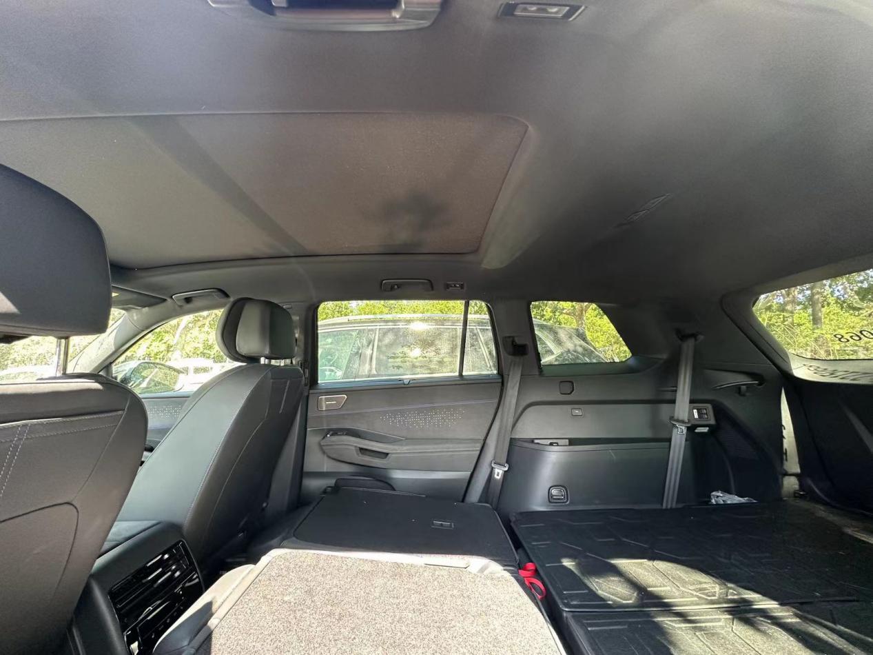 空间是我最看重的,毕竟六口人要用。途昂 Pro 的尺寸摆在那,实际体验下来确实没让人失望。第二排坐三个成年人完全不挤,腿部空间还有两拳多,地板是平的,中间的人也不会不舒服。第三排比汉兰达和唐都宽敞,我 178cm 的身高坐进去,膝盖离第二排座椅还有一拳距离,头部空间也够用,长途出行应该问题不大。