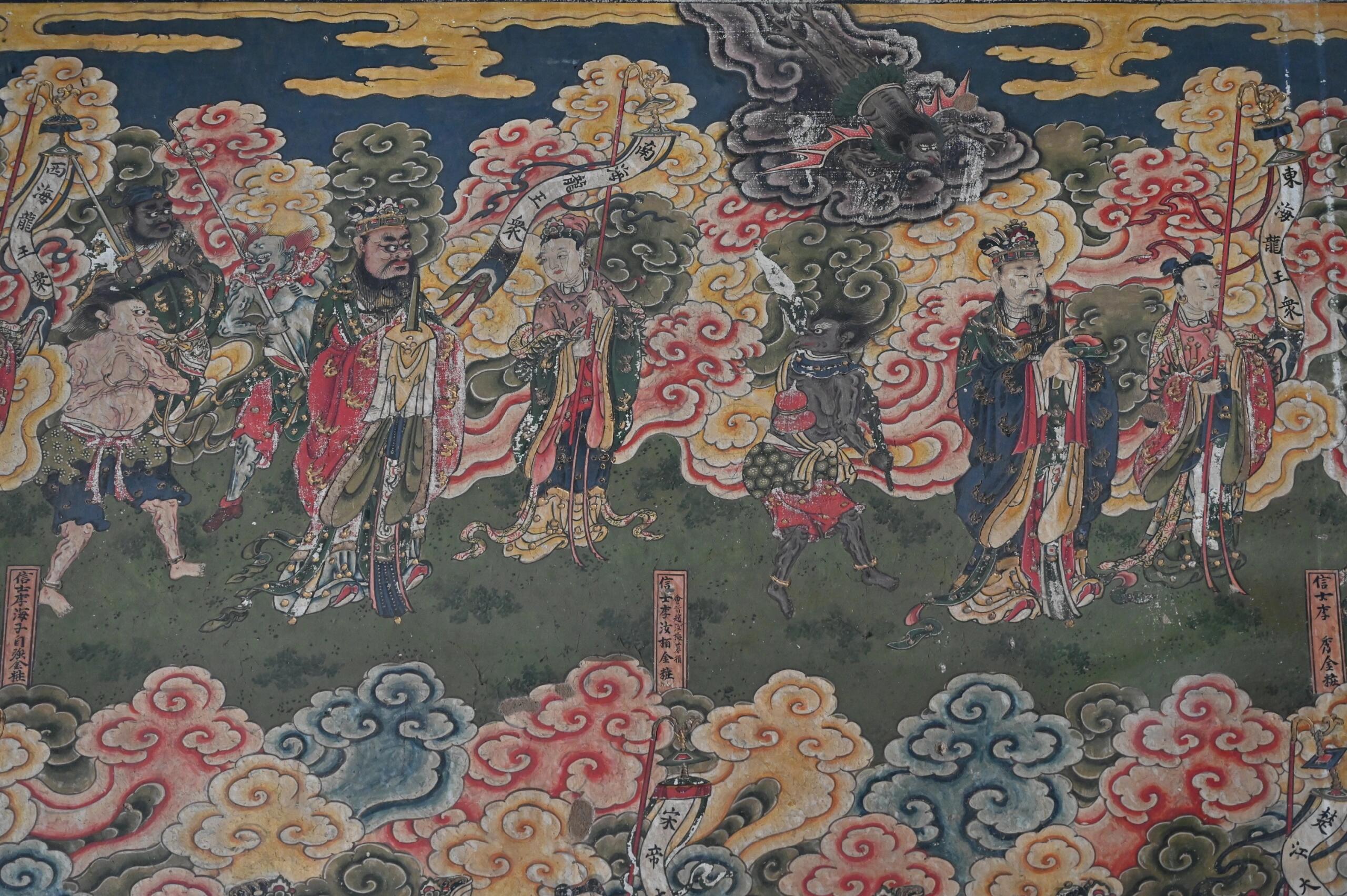 踏入永安寺,传法正宗殿是无法绕过的核心。这座元代大殿屹立至今,带着与生俱来的庄重感。推开殿门的瞬间,满壁丹青扑面而来,恍若置身另一个时空。元代画师的笔触跨越七个世纪,依然鲜活地跃动在墙面之上。882躯神人鬼怪,儒、释、道三教人物齐聚一堂,构成了一场宏大的视觉盛宴。