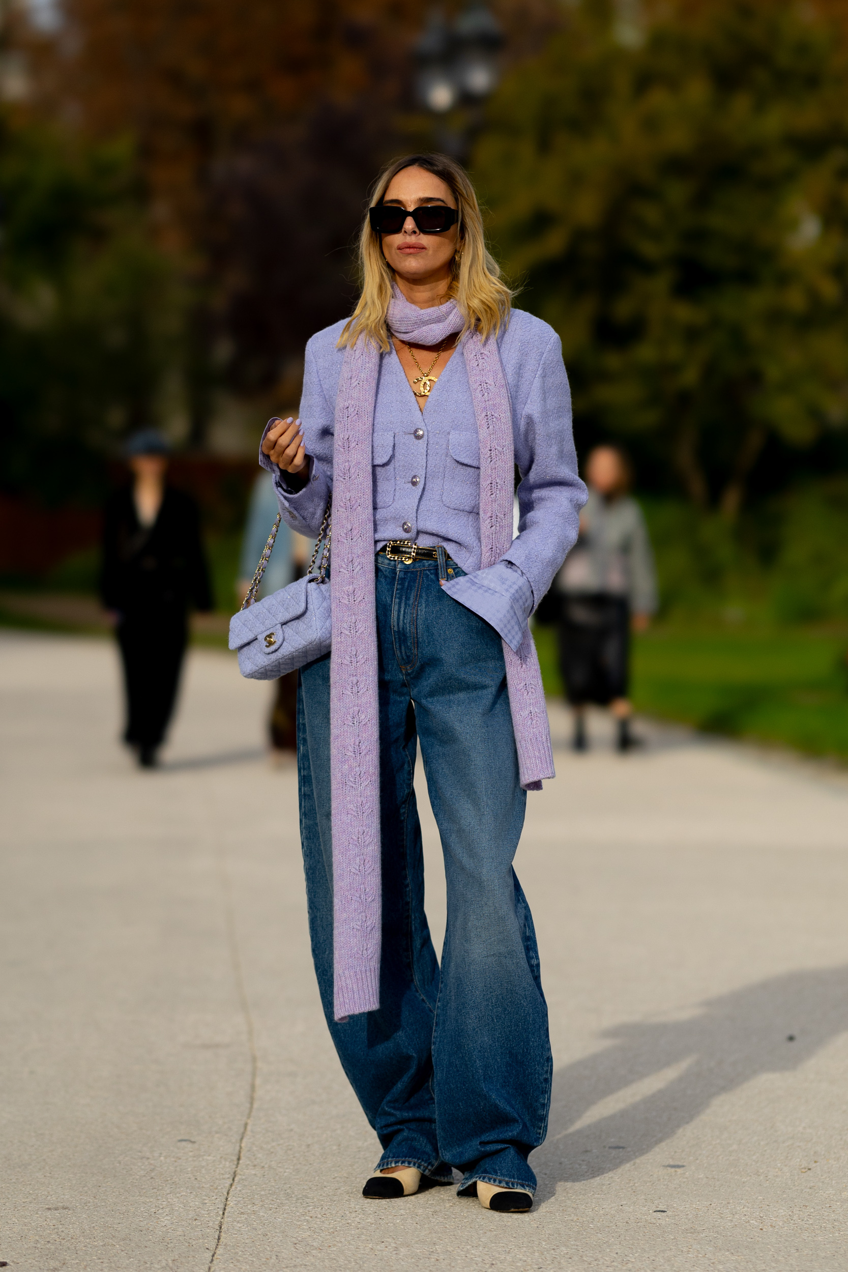 好在有阔腿裤这个 “缓冲剂”,它的松动空间能包容小香风套装的精致感。