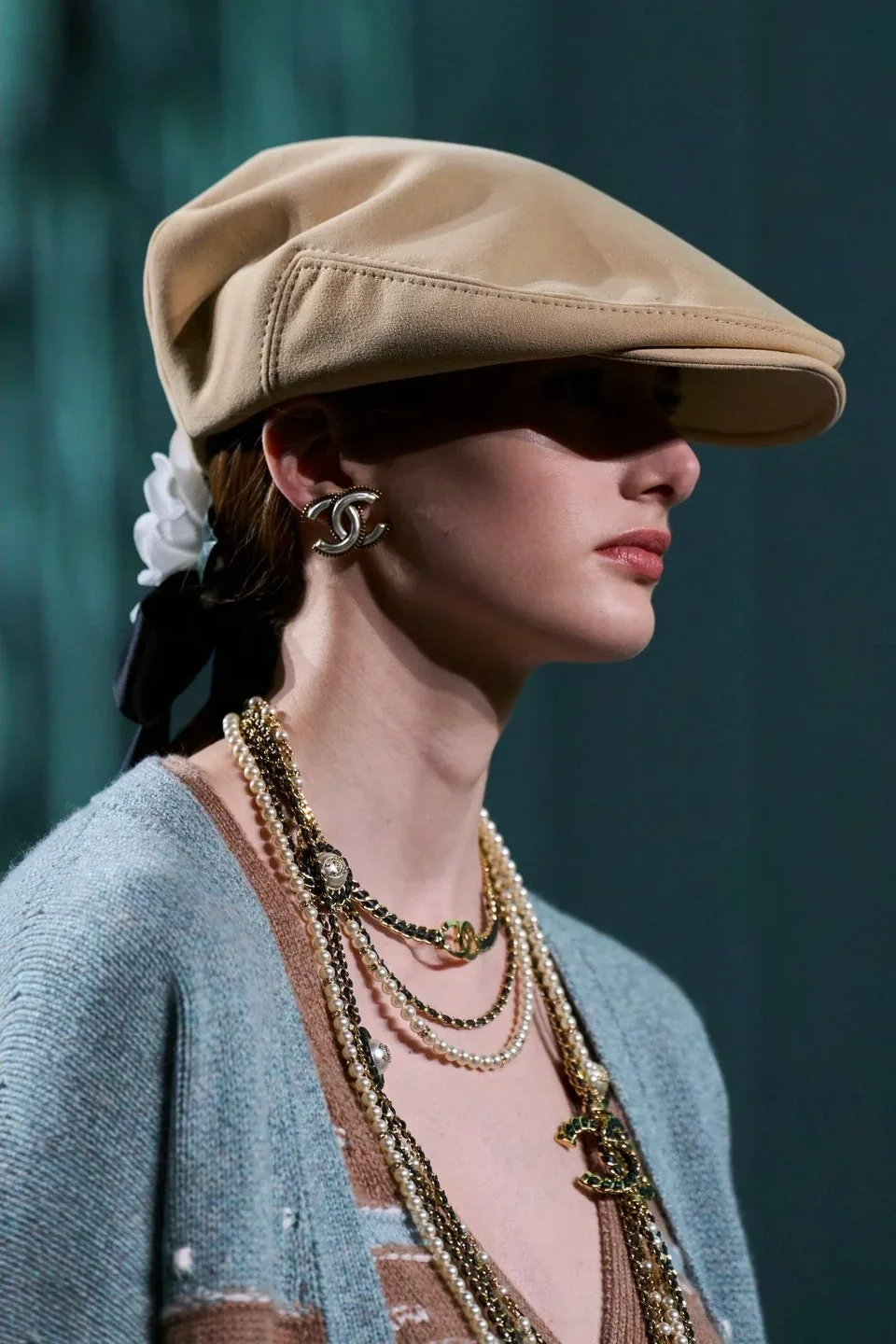 想让造型更有层次、不被小香风外套的精致感 “吞没”,可以在领口下功夫,比如搭配针织披肩点缀。