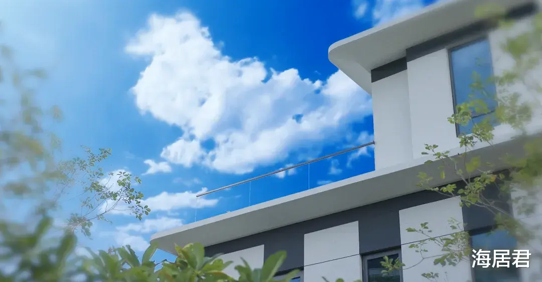 建筑外立面采用现代简约风格,以高阶灰白仿石漆打造出堪比天然石材的质感与颜值,更具备抗海风、耐盐蚀的硬核性能,历久弥新。搭配大面积的玻璃幕墙,将建筑的通透感与光影艺术一次性拉满!
