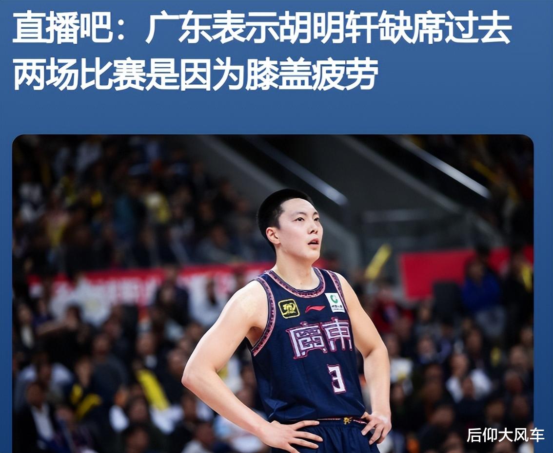 1、胡明轩可能要轮休很长一段时间;在昨晚比赛结束后,根据直播吧的消息确认,近期胡明轩连续缺席比赛的原因是膝盖疲劳。