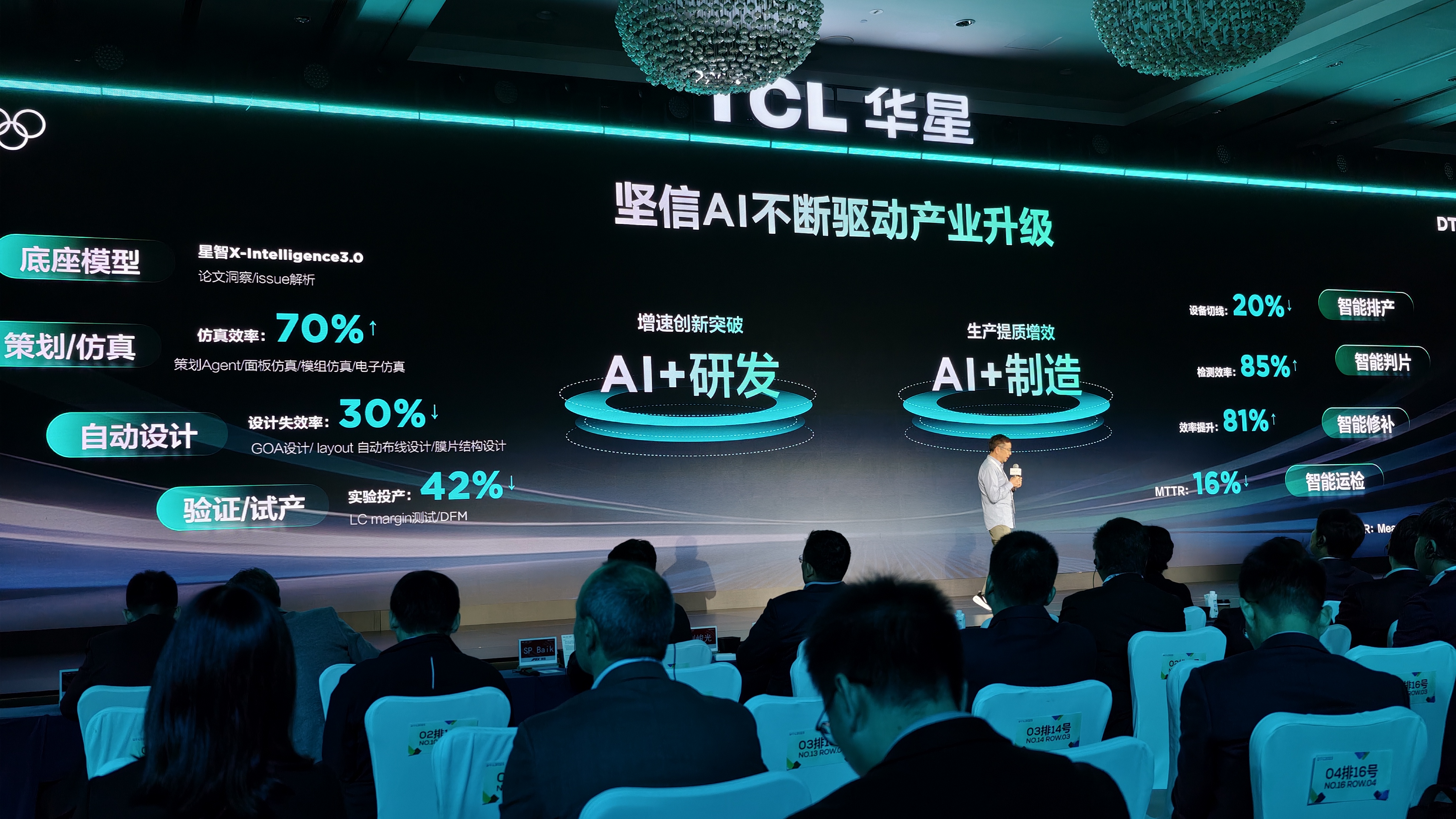 TCL科技集团首席运营官王成提到,AI与显示的深度融合,正重构产业的价值逻辑。TCL华星在制造、研发、运营等环节均已深度应用AI技术。