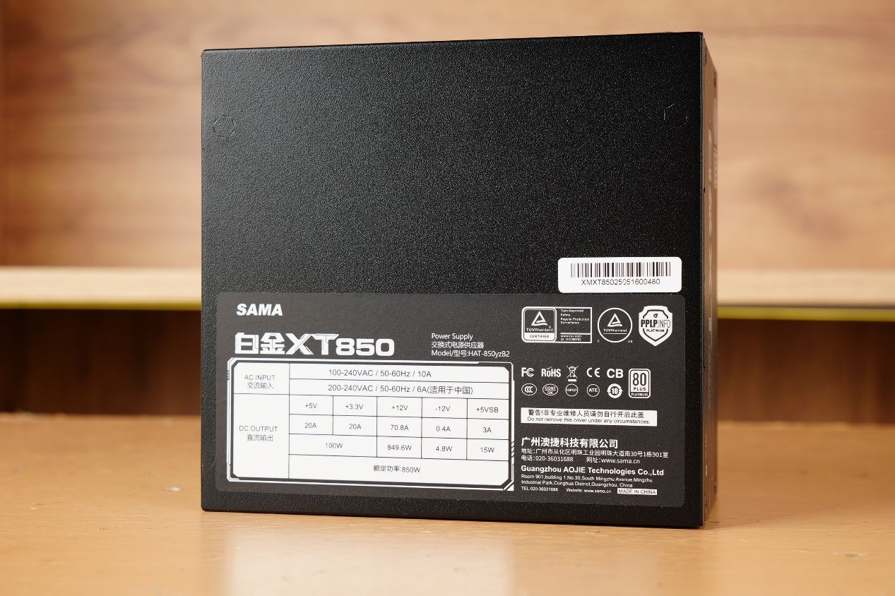 电源选择的是先马最新推出的白金XT 850W,这款电源正如其产品名,通过了80PLUS以及PPLP的双白金认证。以往白金认证的电源在价钱方面都不便宜,而先马在这款电源上却先马打出了全民白金的口号,因此在售价方面必然是人人买得起的价格。