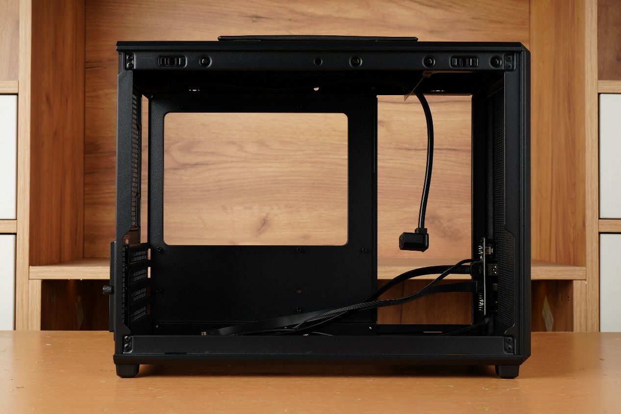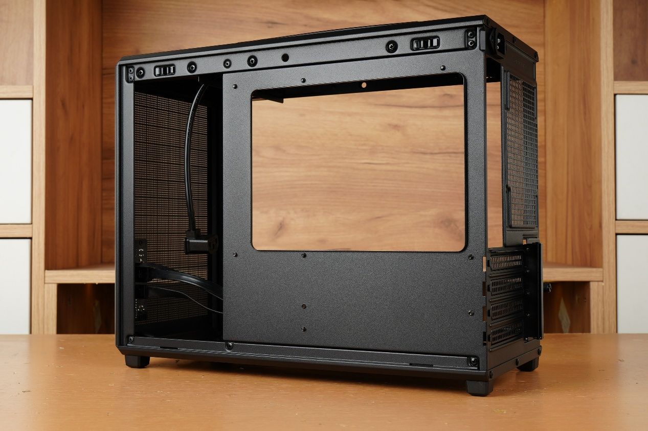 机箱的两侧面板依然是采用了非常方便拆卸的卡扣式固定方式,不过前面板以及上下面板的拆卸设计则被取消了。